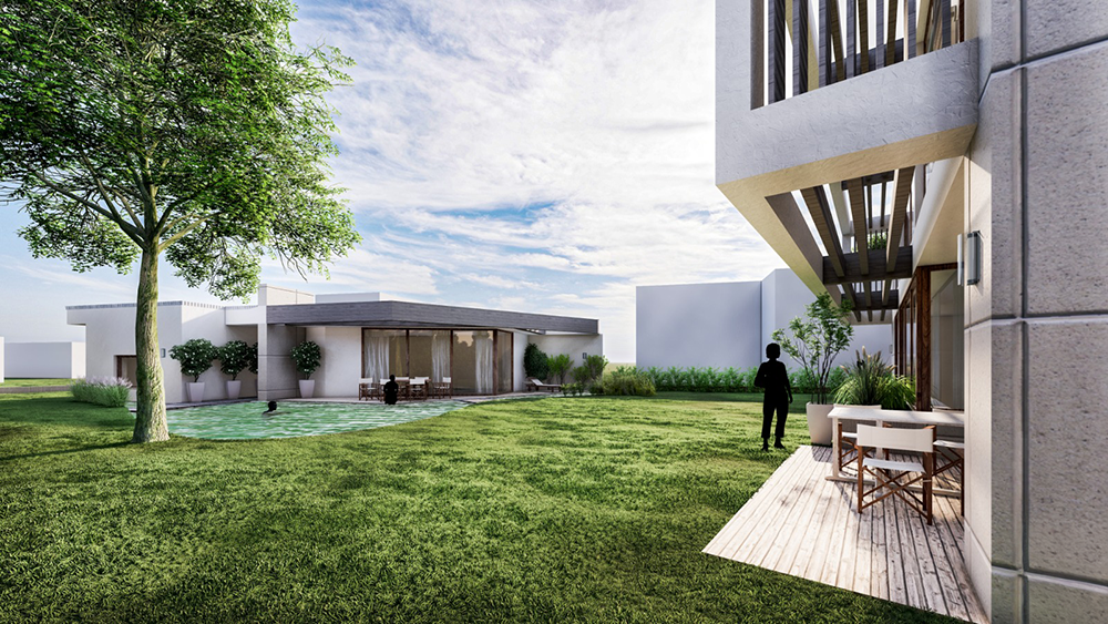 Auf einem 1.085 m² großen Grundstück in Wien wurde das Einfamilienhaus TMRS gemeinsam mit einem Poolhaus samt Einliegerwohnung geplant. Zwischen den beiden Gebäuden entsteht ein geschützter, privater Freibereich, der das architektonische und atmosphärische Zentrum des Grundstücks bildet.